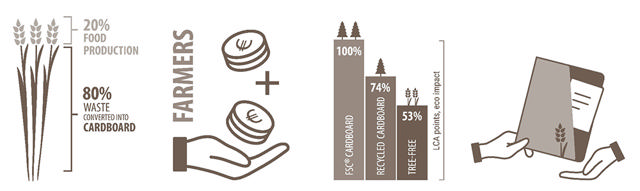 With this new way of producing cardboard, PaperWise makes it possible to use ecofriendly cardboard from agricultural waste for sustainable printing, packaging, and office supplies. The sustainable PaperWise cardboard is indistinguishable from traditional cardboard. It also contributes to greater biodiversity and reduces CO₂ emissions.